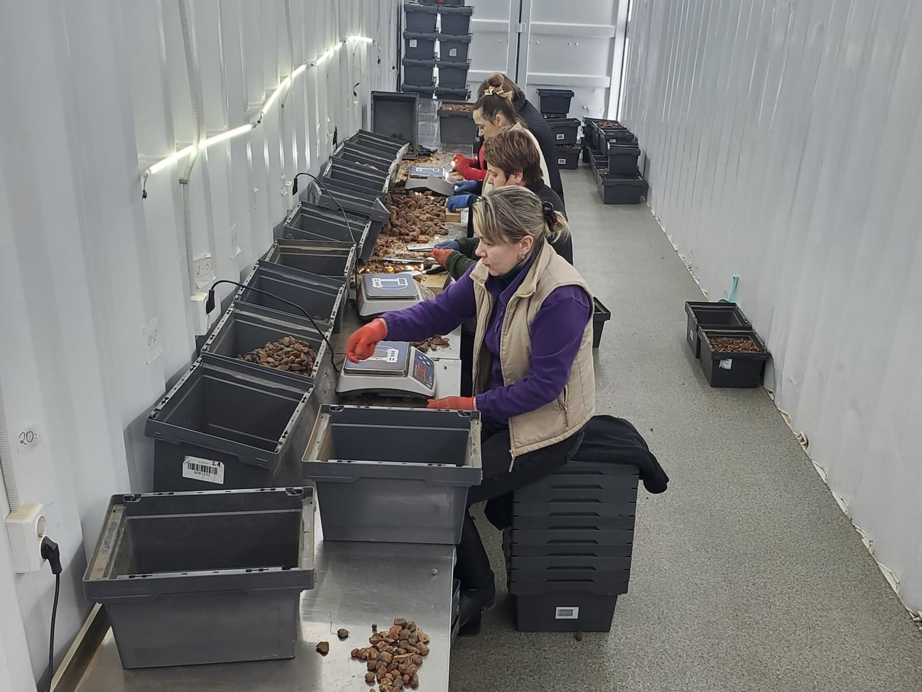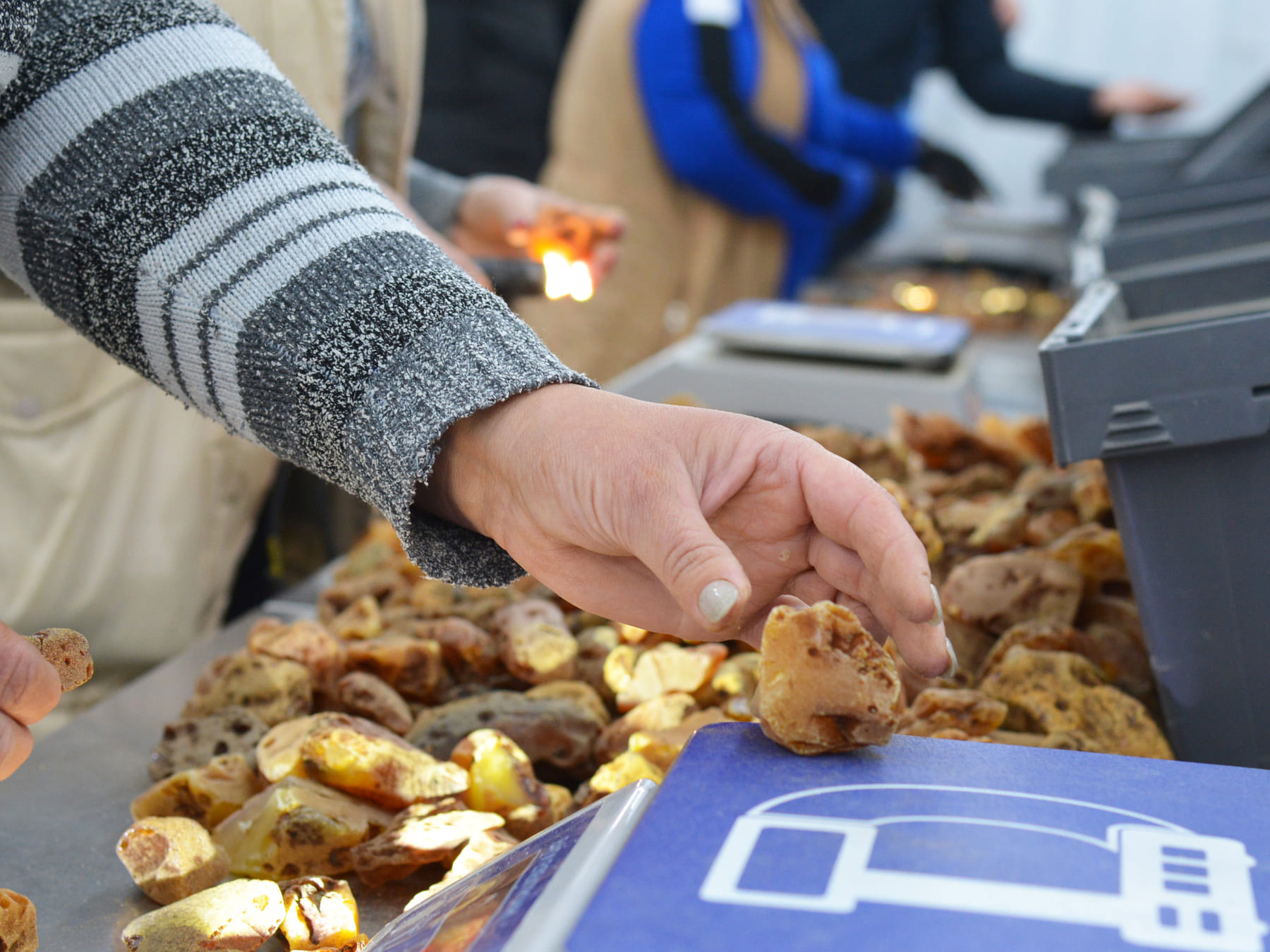- sorting amber by size and quality.