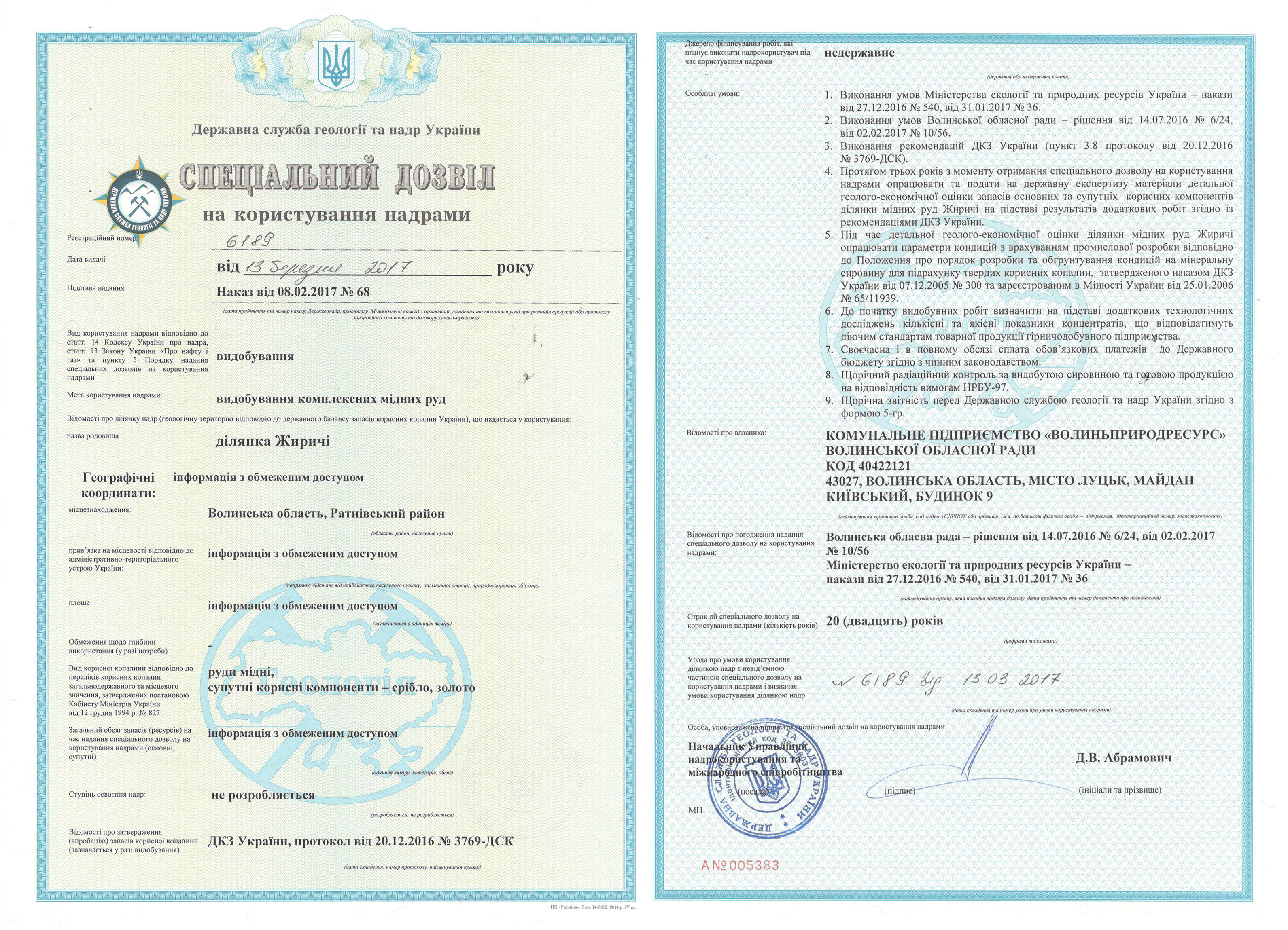Спеціальний дозвіл №6189 – ділянка Жиричі, загальна площа 3140 га.