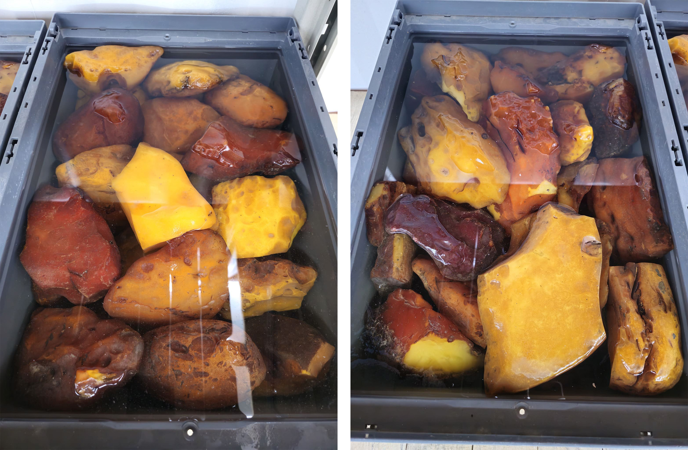 “Such stones are not evaluated by grams but are considered as individual creations of nature. All these large samples of amber are stored in boxes filled with water in the company’s vaults. When the stone was in clay, in the rock, it was preserved. We took it out into the open air, and if it just lies there, it may crack. For example, a stone weighing 800 grams may split and cease to be considered exclusive. That is why we provide special storage conditions for such specimens.”