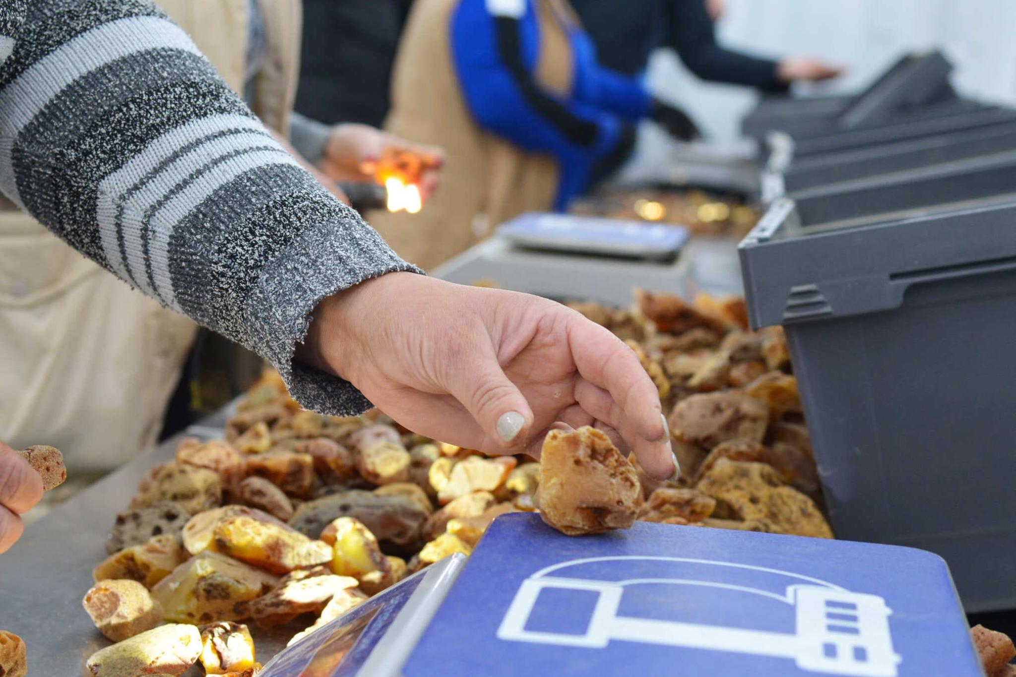 He noted that during a day of work “in the field,” the employees of the enterprise extract between 40 to 60 kg of amber. Later, it is transported to the factory, where the stones are cleaned of dirt and their fractionality is determined.