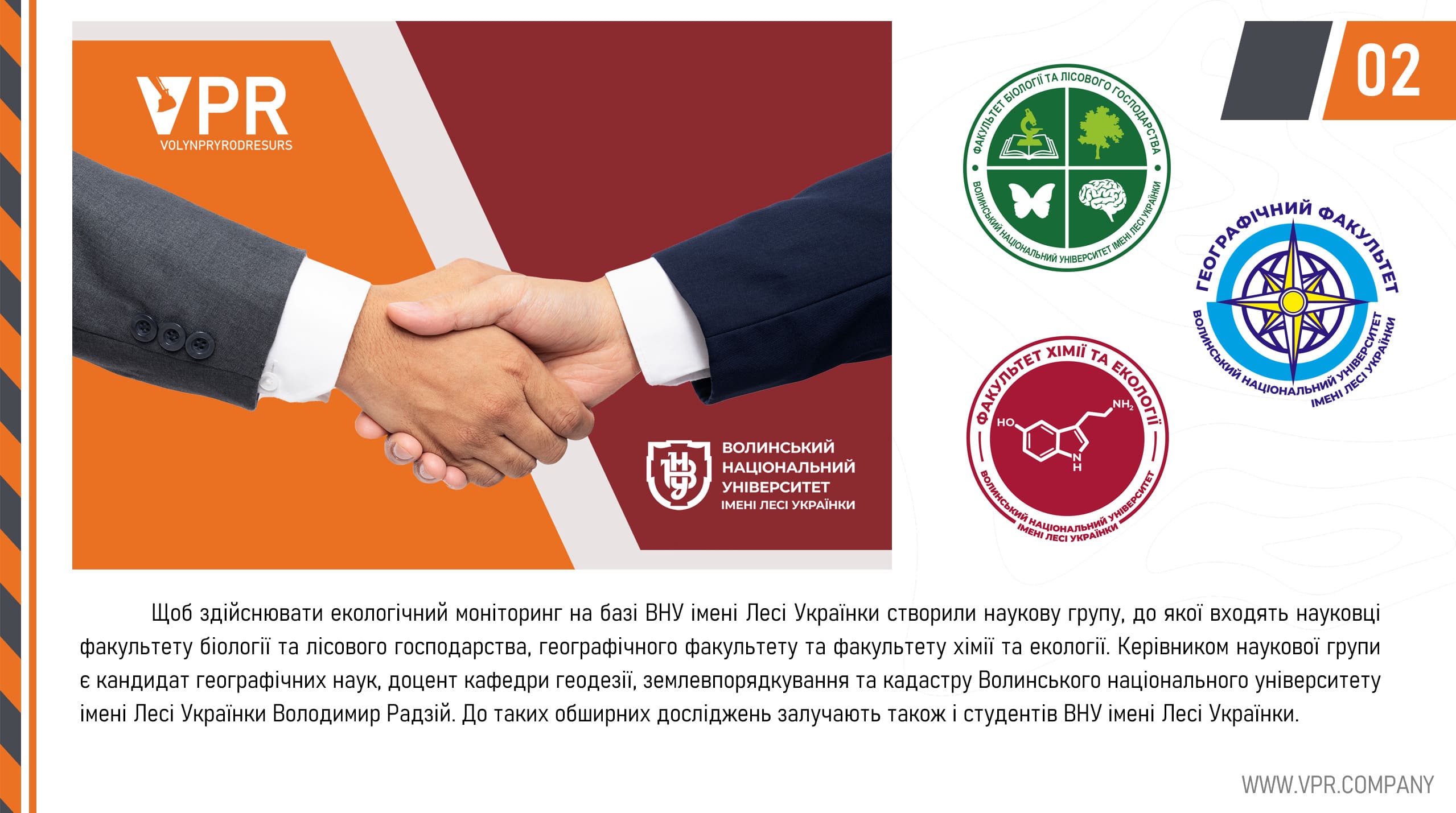 “Volynpryrodresurs” (VPR) is an enterprise specializing in the extraction of amber, peat, and copper ores, while also actively caring for the environment and preserving natural resources. Scientists from Lesya Ukrainka Volyn National University assist in this endeavor.