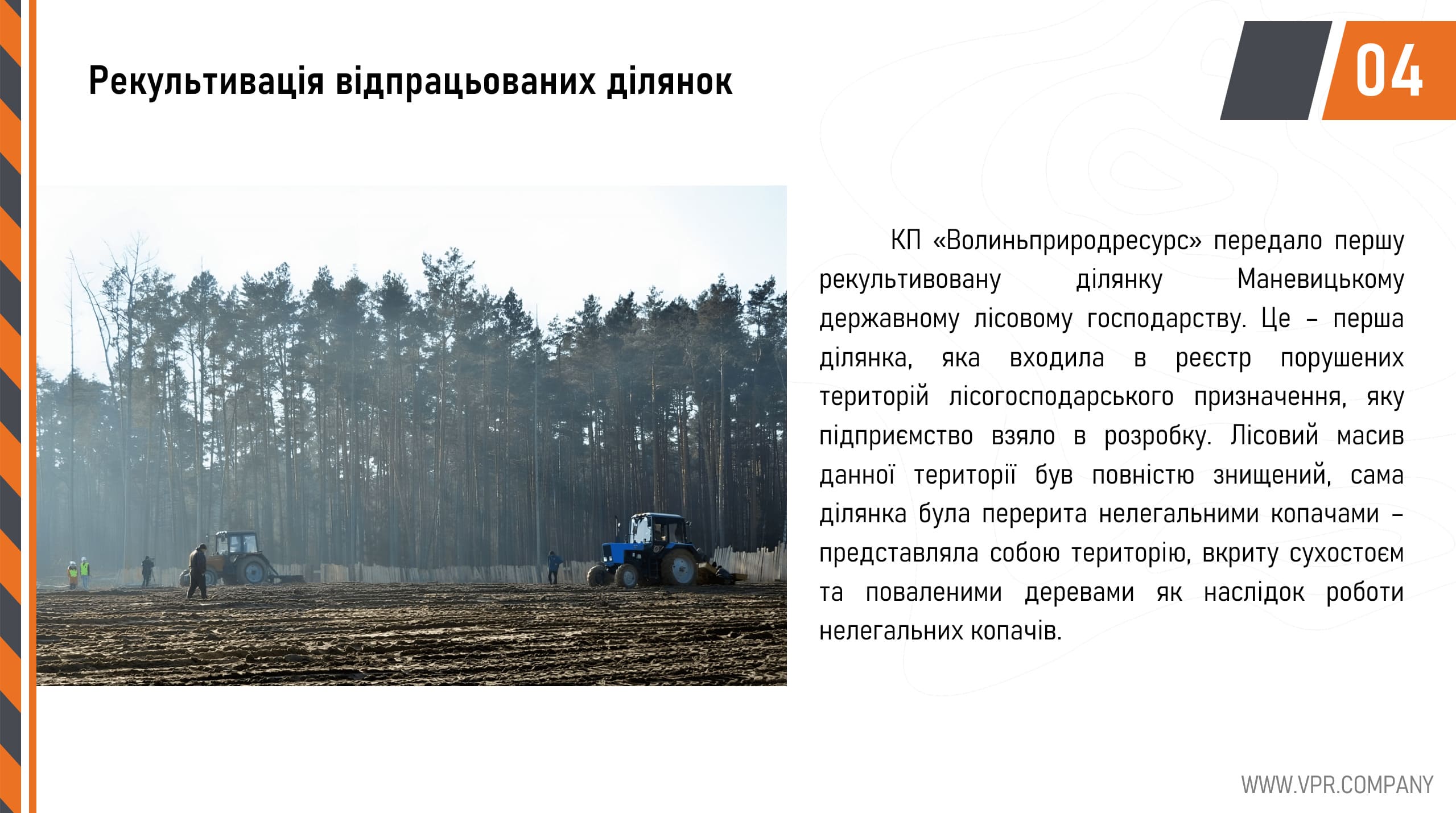 One such measure is the use of modern technologies and equipment that allow for reduced emissions and pollution of the environment. Moreover, “VPR” is actively involved in landscape restoration programs and reclamation of areas that have been subjected to extraction.