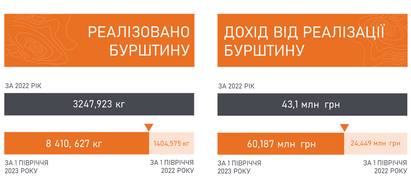 Порівнюючи показники та результати за І півріччя минулого 2022 року за аналогічний період цього 2023 року, можна побачити значне зростання. За підсумками всього 2022 року та показниками лише І півріччя 2023 року, помітна позитивна динаміка, що є свідченням активного розвитку підприємства, застосування нових технологій в процесі видобування та налагодження вилучення бурштину мілкої фракції, яке потребує застосування мілких сит при видобуванні та подальшої складної системи сортування мілкої фракції, усе разом це дозволило збільшити загальний обсяг видобутку.