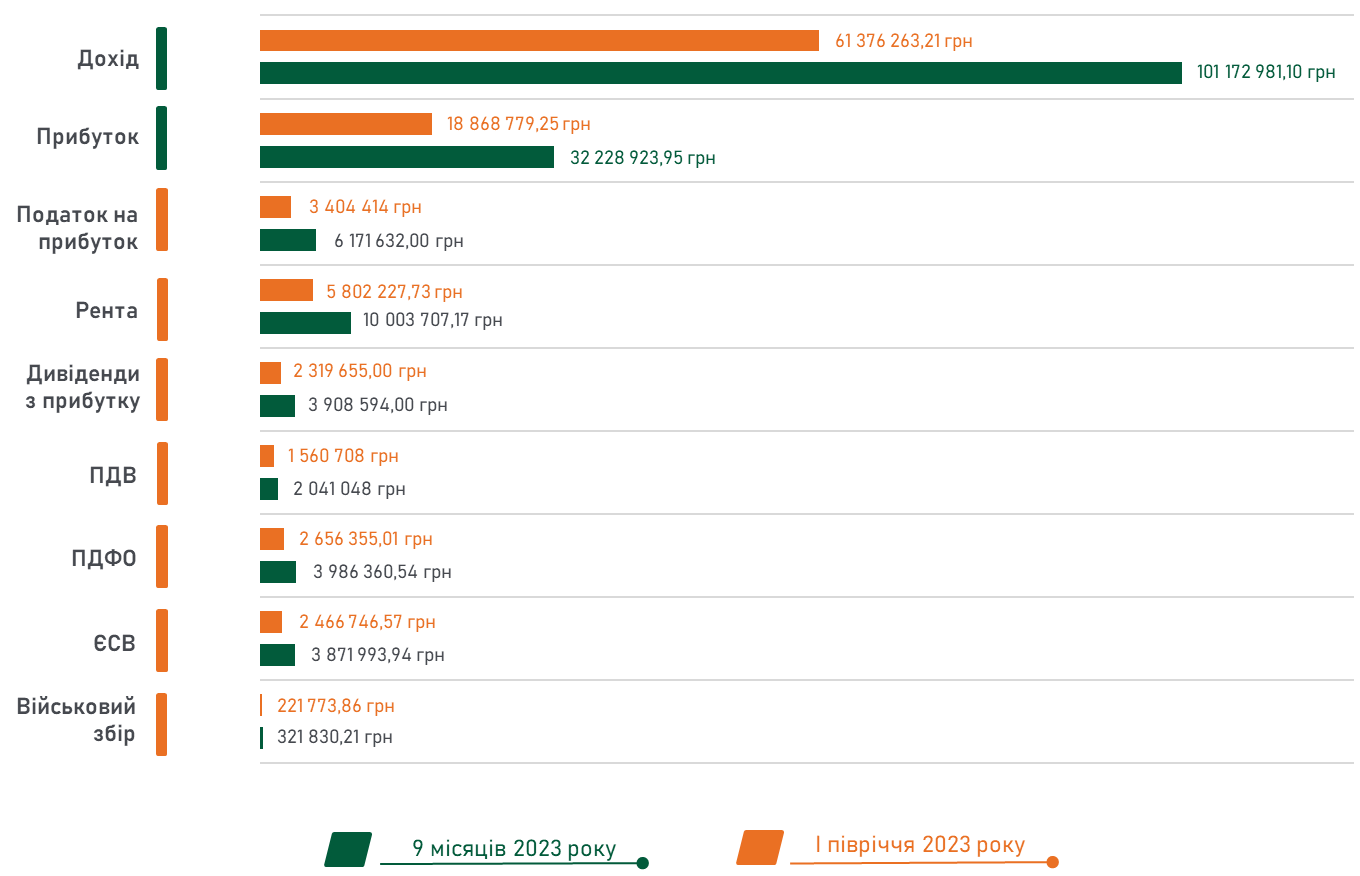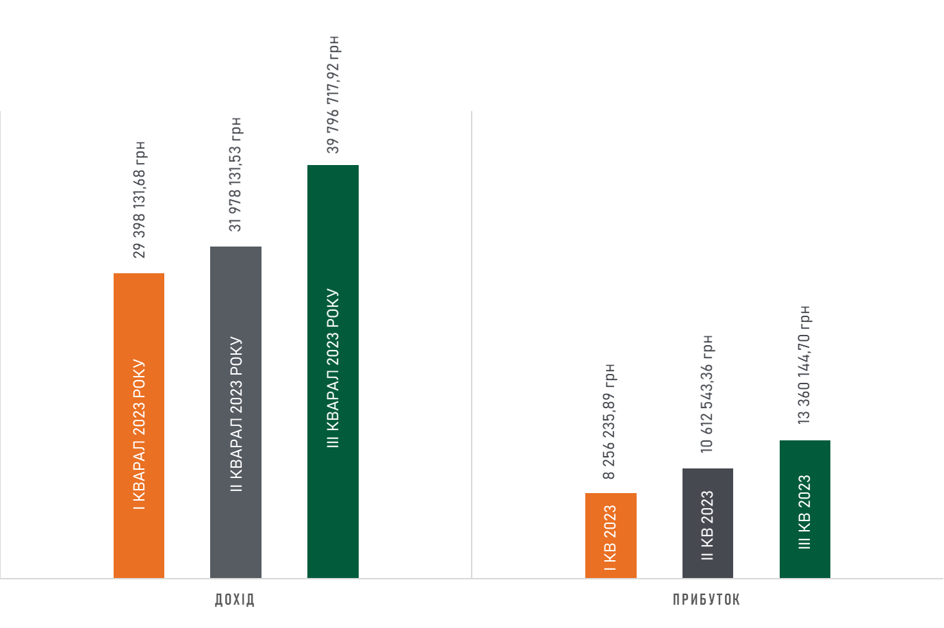 Порівнюючи  з  підсумками щоквартальної фінансово-господарської діяльності за ІІІ квартал 2023 року, до загального фонду Волинського обласного бюджету з частини чистого прибутку у розмірі 15% сплачено 1 588 939,00 грн, помітно, що щоквартально спостерігається позитивний приріст усіх показників рентабельності підприємства.